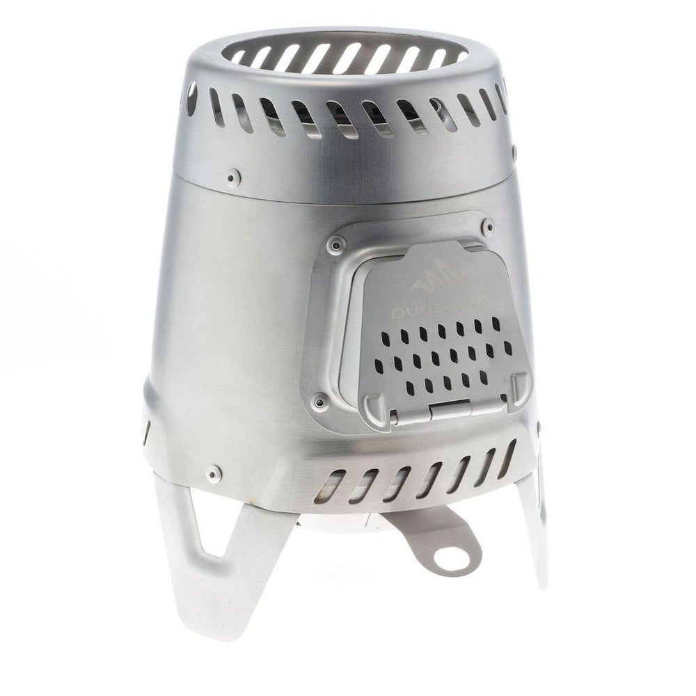 Hornillo de madera bushcraft con doble combustión acero inoxidable quechua mh500