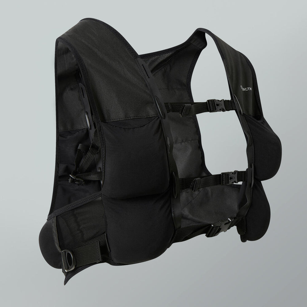 Este chaleco lastrado, basado en un chaleco con peso de trail, permite a los deportistas intensificar su entrenamiento. Su peso es ajustable hasta 5 kg.