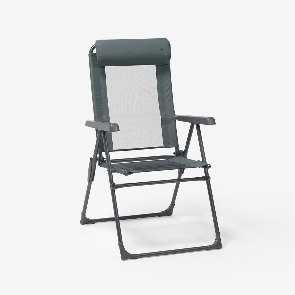 Nuestra silla de camping se adapta a tus necesidades: respaldo reclinable, reposabrazos y reposacabezas. Relájate en cualquier lugar como si estuvieras en casa.