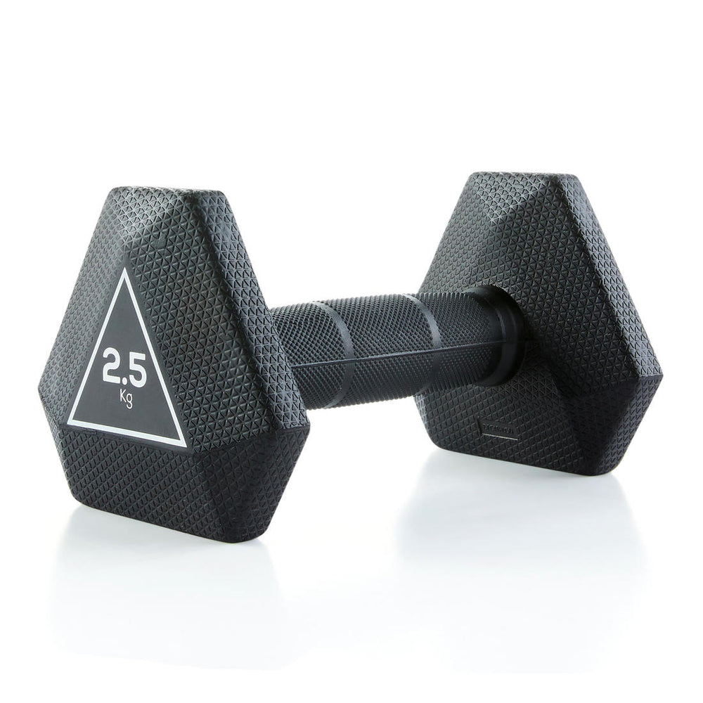 Unas mancuernas polivalentes, para movimientos de musculación y ejercicios funcionales cross training. Su forma hexagonal ofrece una mayor estabilidad. Caucho resistente para proteger de los golpes.