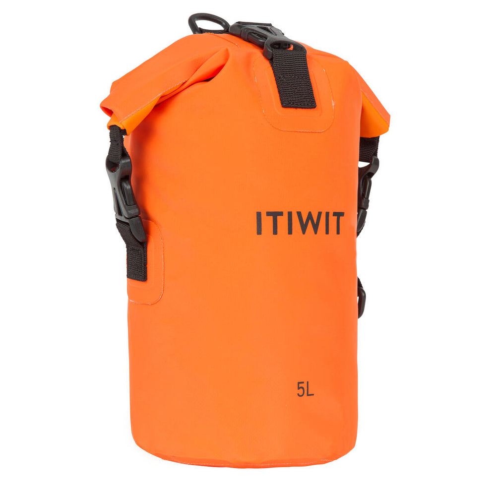 Bolsa petate de 5 litros con bandolera para proteger tus enseres mientras practicas deportes náuticos. Es estanca a las salpicaduras de agua (norma IPX4).