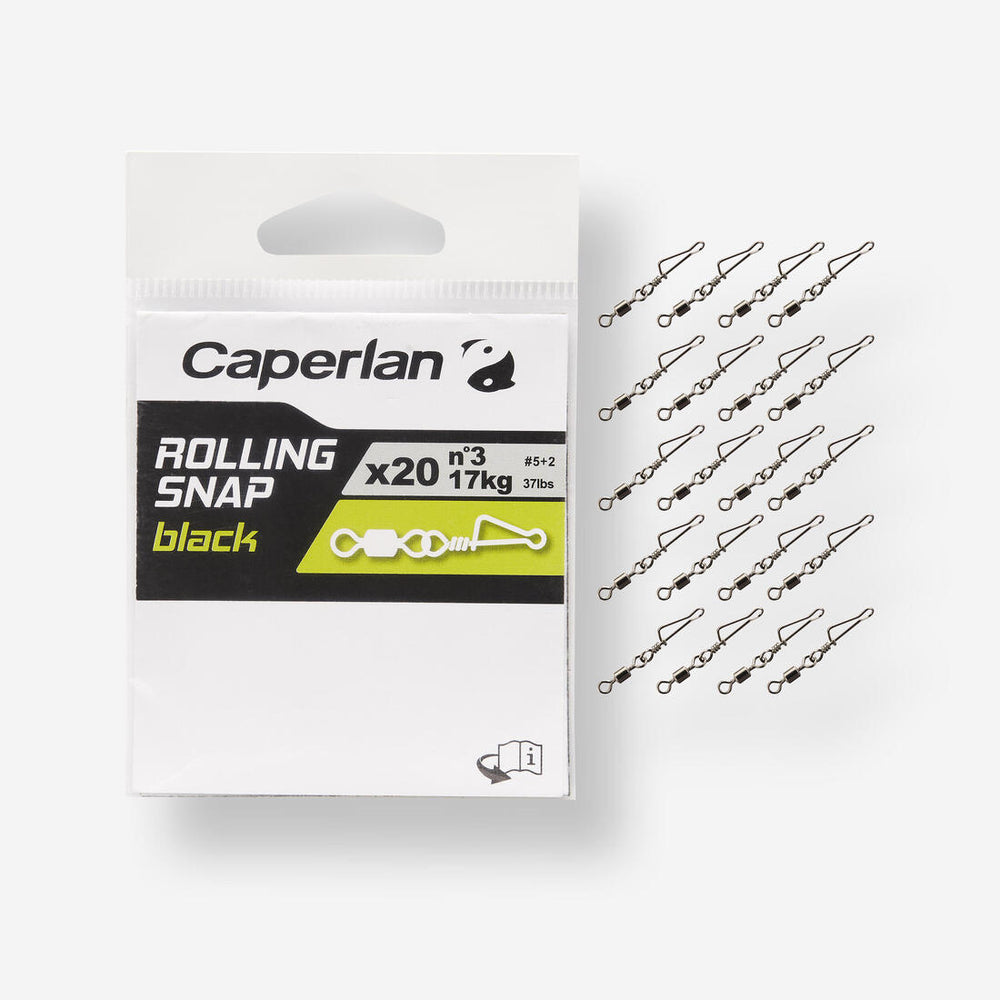 Los emerillones gancho ROLLING SNAP BLACK permiten cambiar los montajes o señuelos fácilmente. El emerillón rolling integrado evita la torsión de la línea.