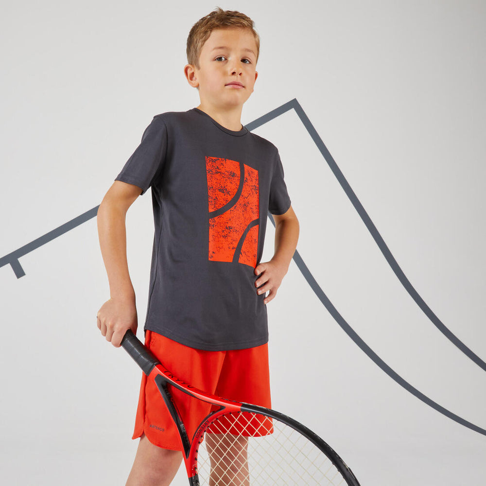 Hemos diseñado esta camiseta para niños que quieren jugar al tenis u otros deportes de raqueta con tiempo cálido.