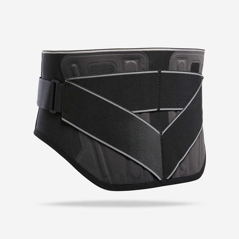 Este cinturón lumbar proporciona una sujeción reforzada, de nivel 4 sobre 5, gracias a sus refuerzos flexibles. Úsalo durante tu sesión de deporte.