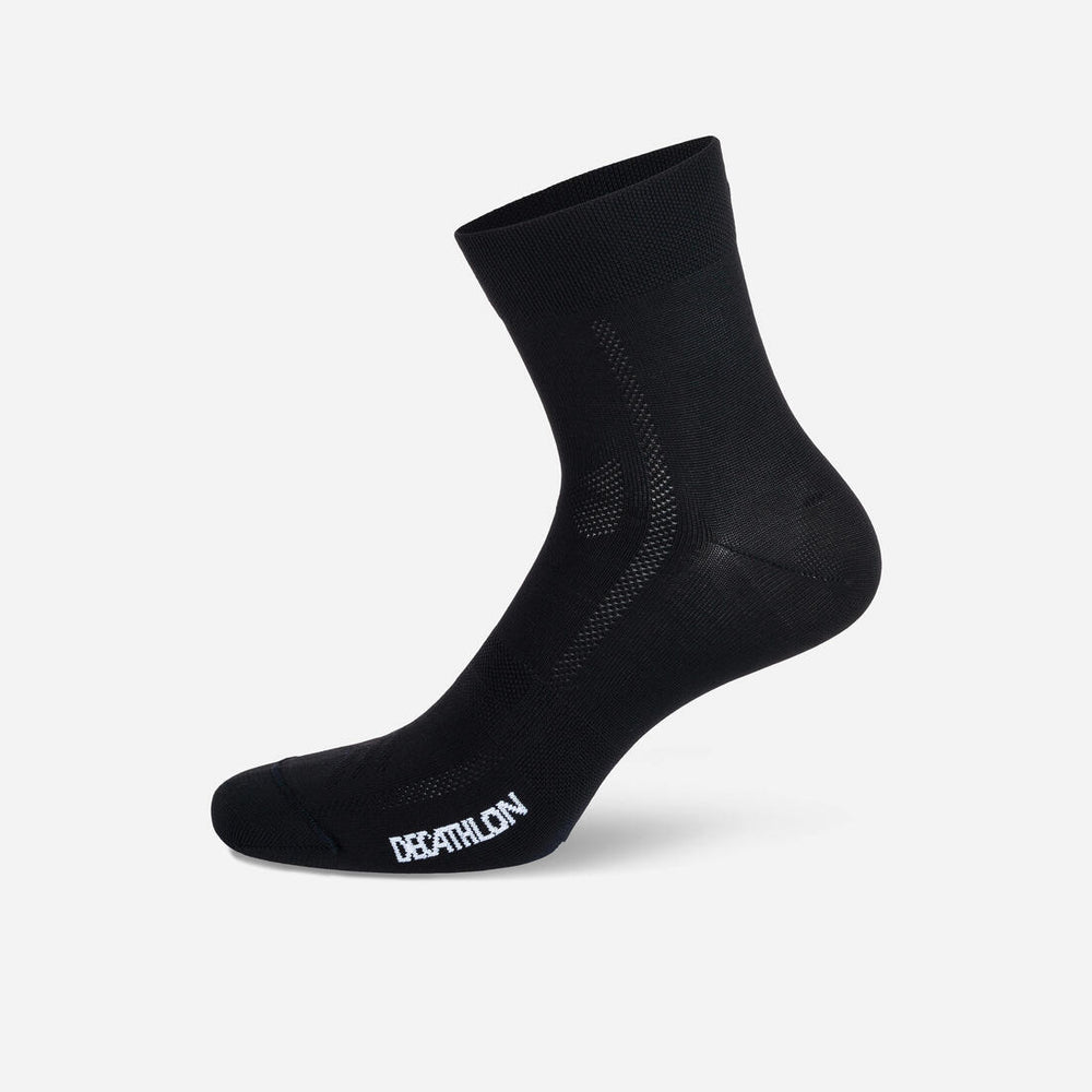 Cuando practicas ciclismo, tanto para tus desplazamientos como en competición, tus pies trabajan mucho. El pedaleo puede provocar rozaduras que, junto con la sudoración, pueden resultar muy molestas. Por lo tanto, el uso de un par de calcetines adaptado a la práctica ofrece un confort apreciable. Este par de calcetines B'TWIN 500 evacúa el sudor y aporta comodidad durante las salidas regulares gracias al componente ligero.