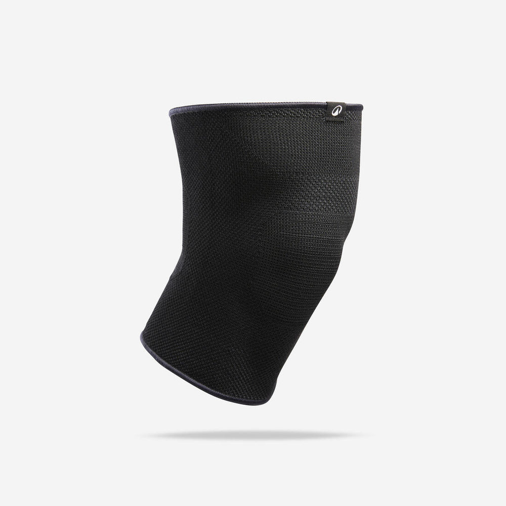 Esta rodillera ofrece una compresión en las rodillas durante deportes de impacto moderado como la marcha rápida o ejercicios que requieren esfuerzo en las rodillas, como las sentadillas o las prensas. Con su punto transpirable, especialmente en la parte posterior de la rodilla, es cómoda de llevar. Gracias a sus zonas de confort en la rótula y en la parte posterior de la rodilla, no interfiere con el movimiento. Se puede usar sobre la piel, salvo contraindicaciones, o sobre unos leggings.