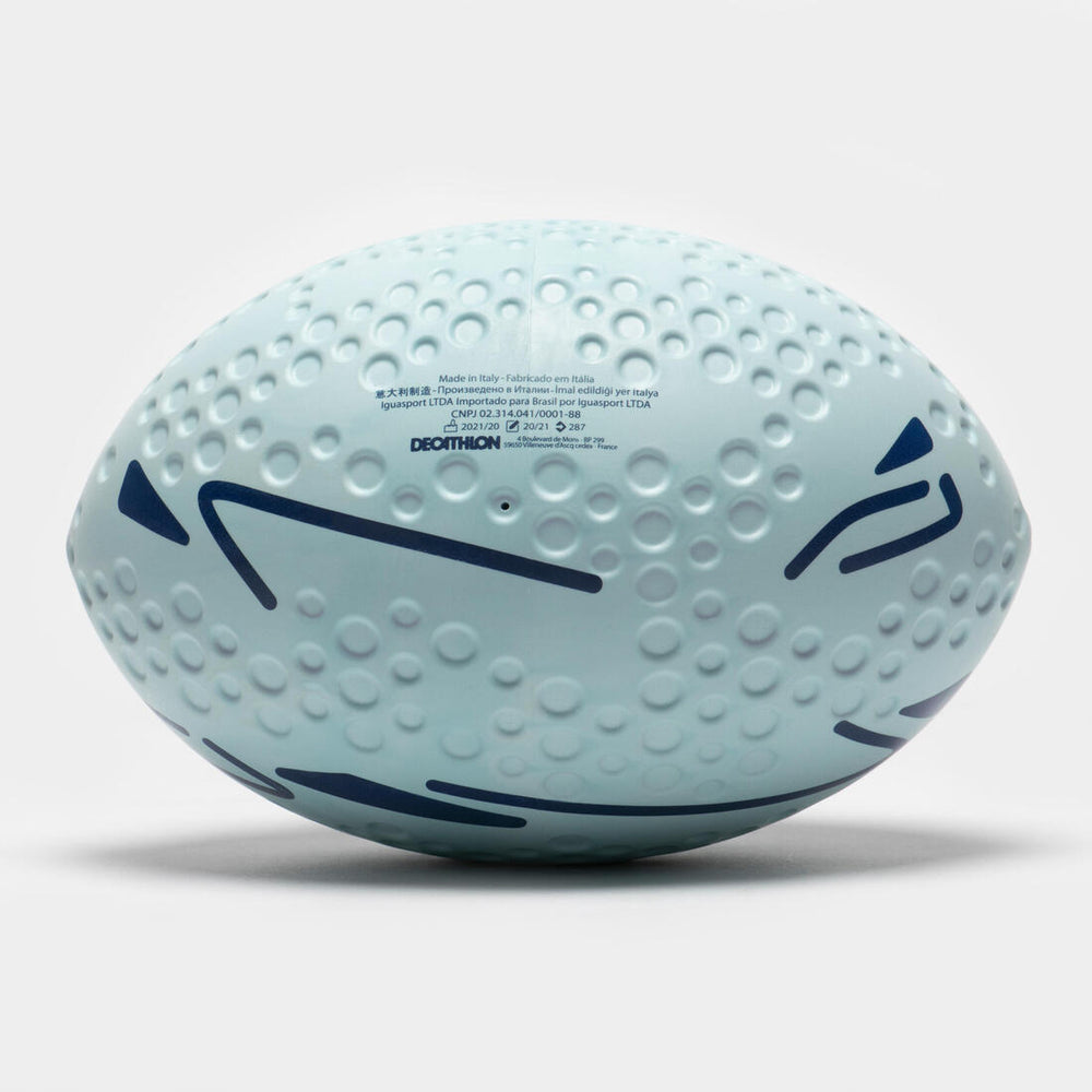 ¡Para iniciarse en el rugby con total tranquilidad!Este balón de talla 3, para niños de 5 a 9 años, está fabricado con espuma de alta densidad para un toque amortiguado. A diferencia de la espuma clásica, su estructura es de doble densidad:no absorbe agua, no se vuelve pesado y resiste el juego en el exterior. Otra ventaja práctica:¡no es necesario inflarlo!