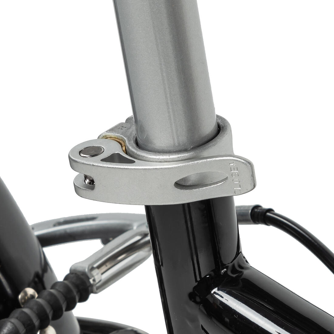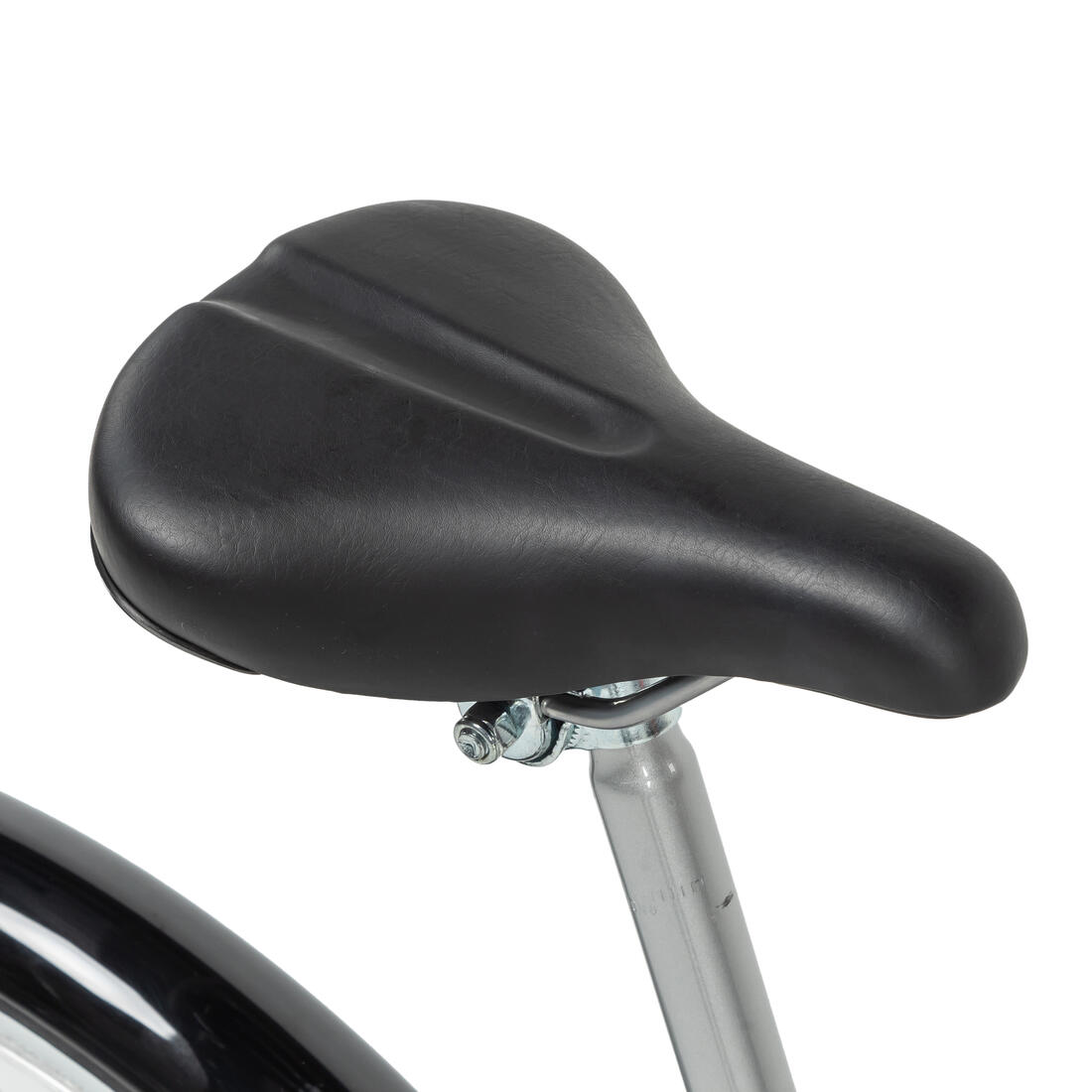 Potencia y manillar semielevados. Fijación rápida del sillín. Sillín cómodo con refuerzo (armazón de plástico) para ofrecer una posición cómoda. Ajuste del sillín rápido y sin herramientas. B'TWIN ha elegido un sillín reforzado y resistente a toda prueba (cuando la bici se cae al suelo...).