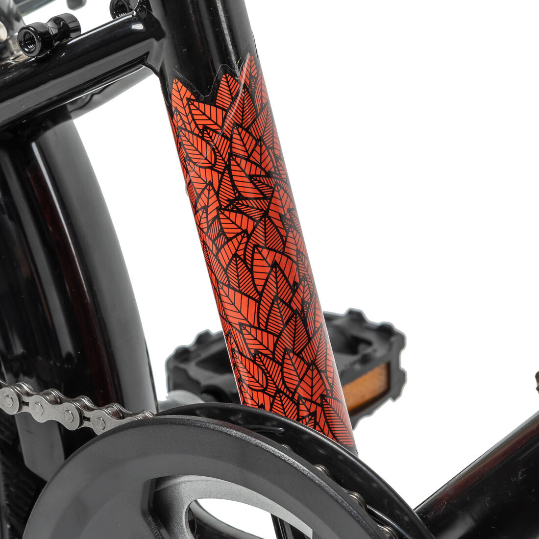 Cárter de plato específico B'TWIN con decoraciones incrustadas en el plástico. El cárter refuerza la seguridad al reducir el riesgo de lesiones con los platos.