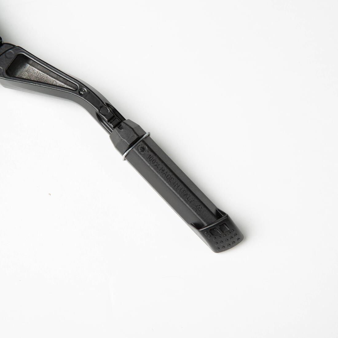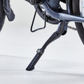 Fija el caballete para bici plegable de 20 pulgadas bajo el cuadro. El botón facilita el ajuste de la longitud del caballete para adaptarlo a diferentes terrenos y cargas, para una mayor estabilidad.