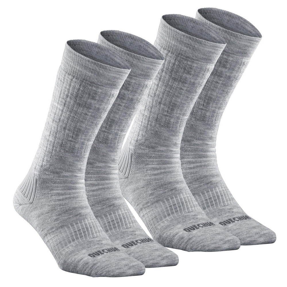 Para estar bien equipado en invierno, te aconsejamos aplicar los siguientes principios: Calor: aporte de calor mediante calcetines cálidos (idealmente con un % de lana adecuado) Transpirabilidad: Elige los calcetines en función de la intensidad de la ruta de senderismo y, en particular, escoge modelos transpirables para limitar la humedad. Altura de la caña: adapta el largo del calcetín a la altura de la caña y elige modelos largos si quieres más protección.