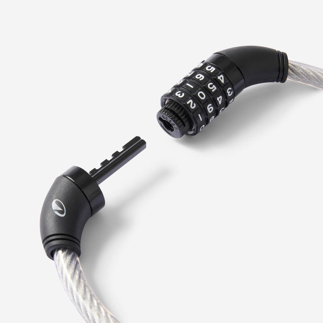 Cable enfundado de 12 mm de diámetro con baja resistencia al robo. Cerradura con código personalizable entre 0000 y 9999.