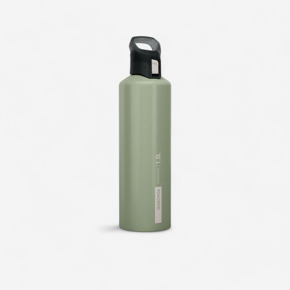 Resistente, de aluminio, esta cantimplora con su tapón bloqueable de apertura rápida te acompañará en tus salidas de senderismo y tus desplazamientos diarios (1,5 L).