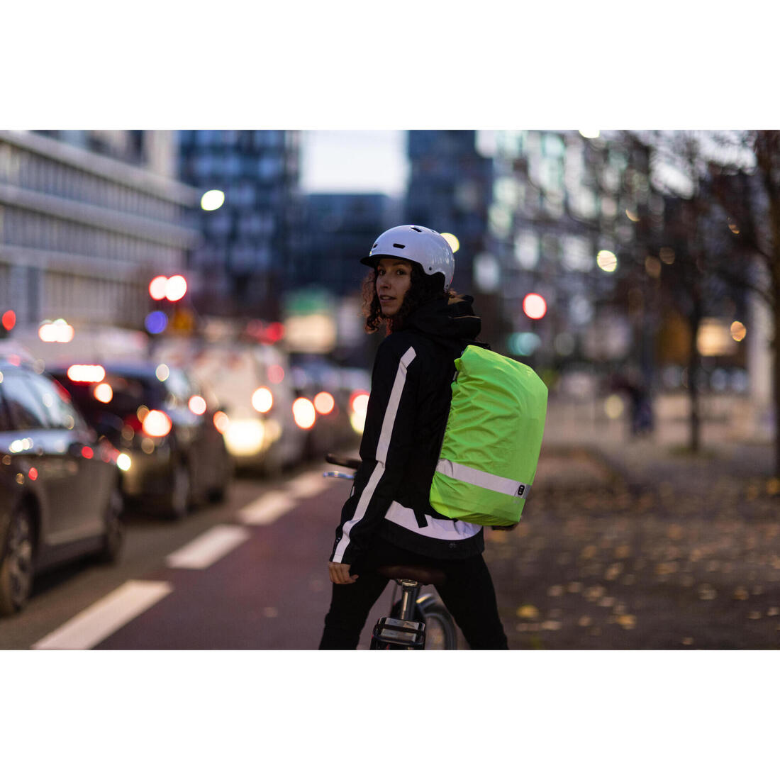 Dos en uno: protege tu mochila de la lluvia y aumenta tu visibilidad. Esta funda de protección impermeable y fluorescente hace que tu espalda sea visible, día y noche.