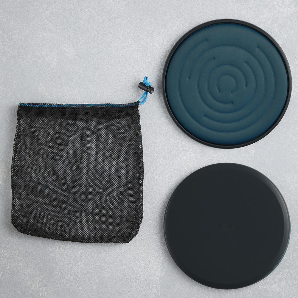 Con estos discos podrás trabajar todo el cuerpo en todas partes, gracias a sus dos superficies se adapta al suelo blando o duro, podrás llevarlos a cualquier parte gracias a su bolsa de transporte.