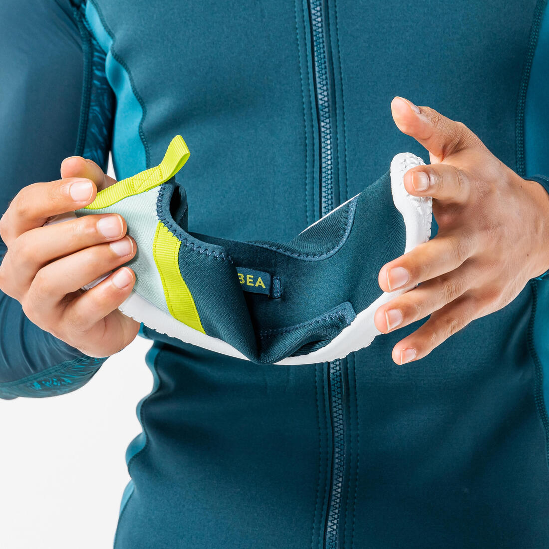 Escarpines cómodos y fáciles de poner para protegerte de cortes y resbalones, ideales para la playa o el río. Suela con tacos de 5 mm que mejoran el agarre.