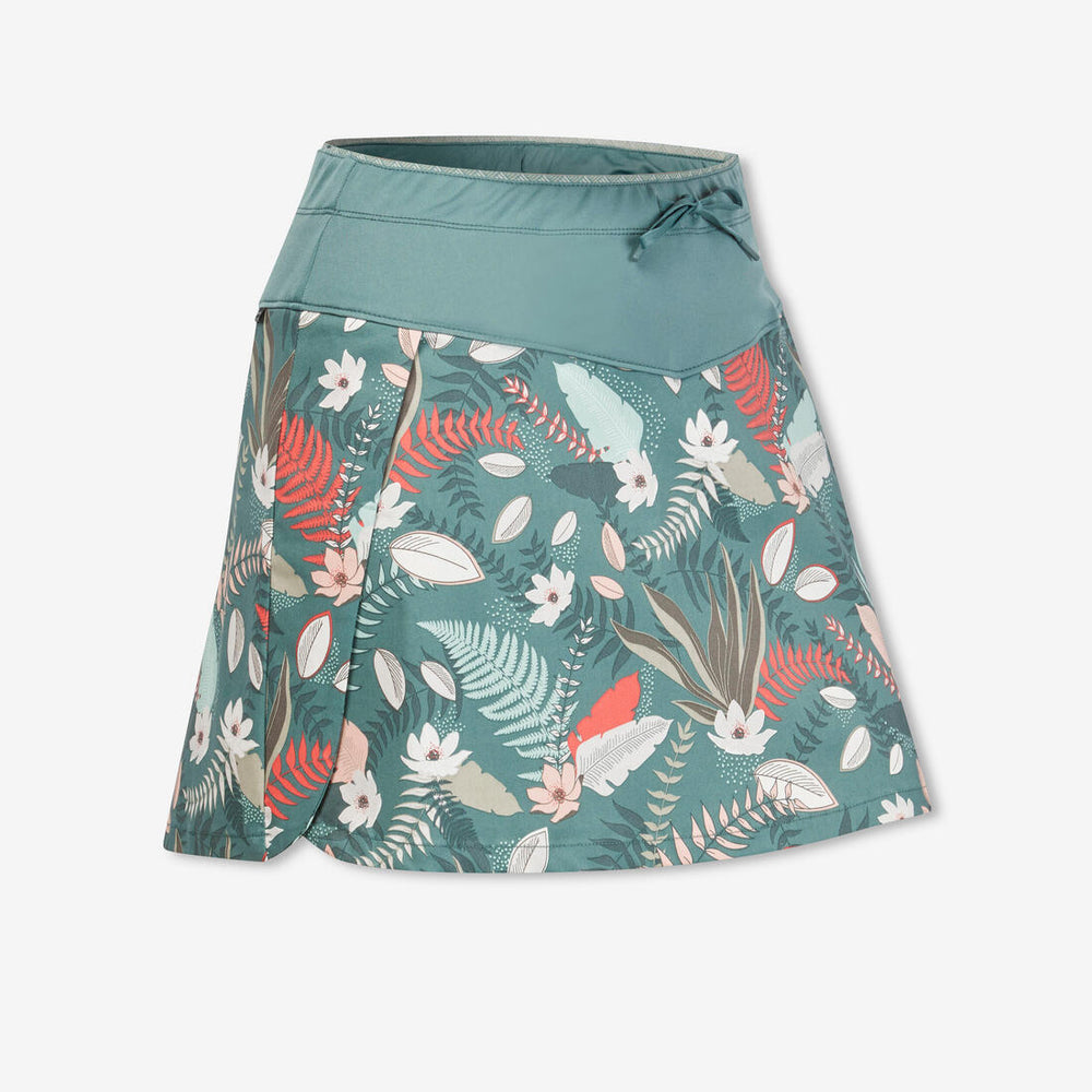 Nuestro equipo de mujeres senderistas apasionadas ha diseñado esta falda-short para la práctica del senderismo en planicie, bosque o litoral.