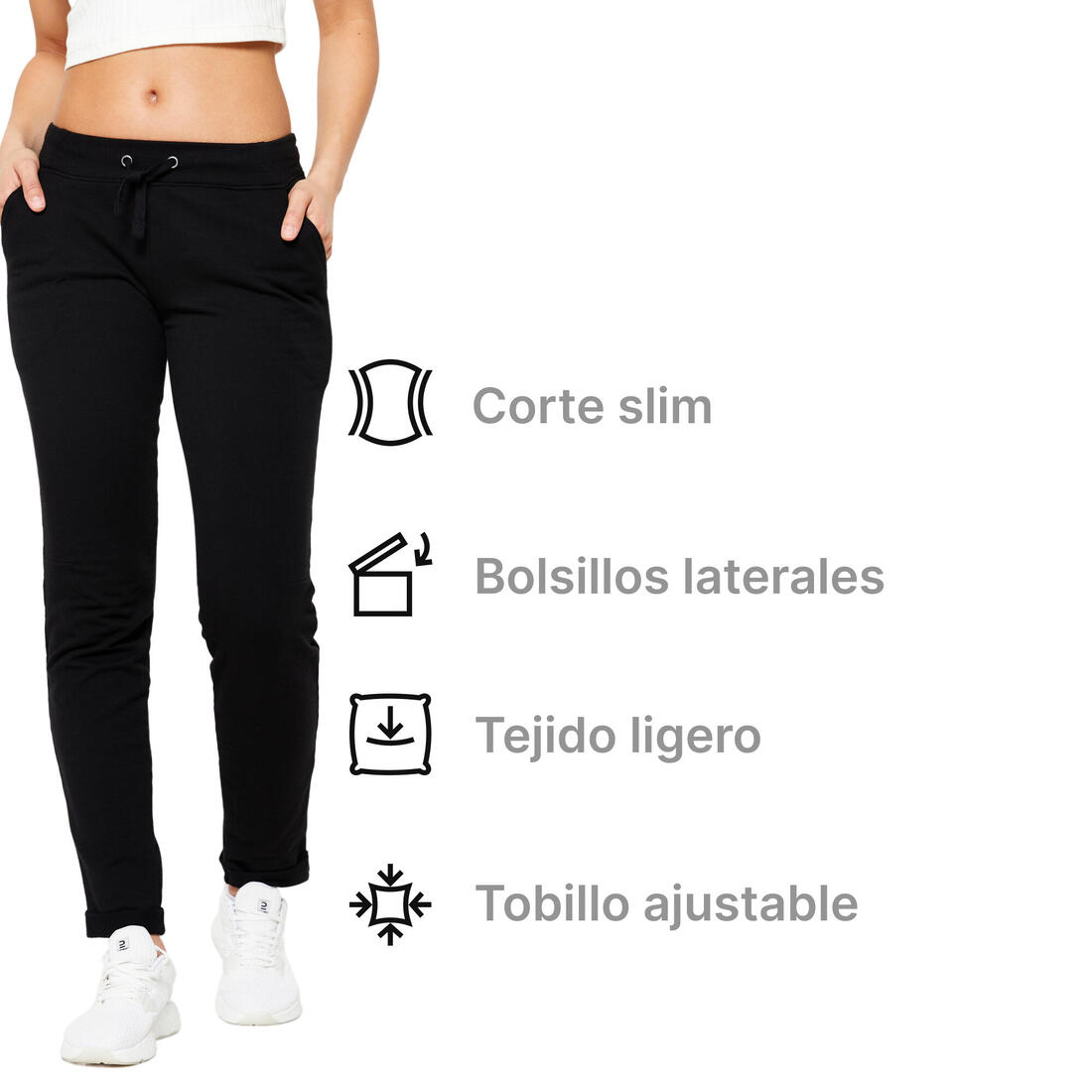 Un pantalón slim que ofrece una gran libertad de movimientos y una comodidad excepcional. Cuenta con dos bolsillos laterales, puños en los tobillos y cordón ajustable en la cintura.