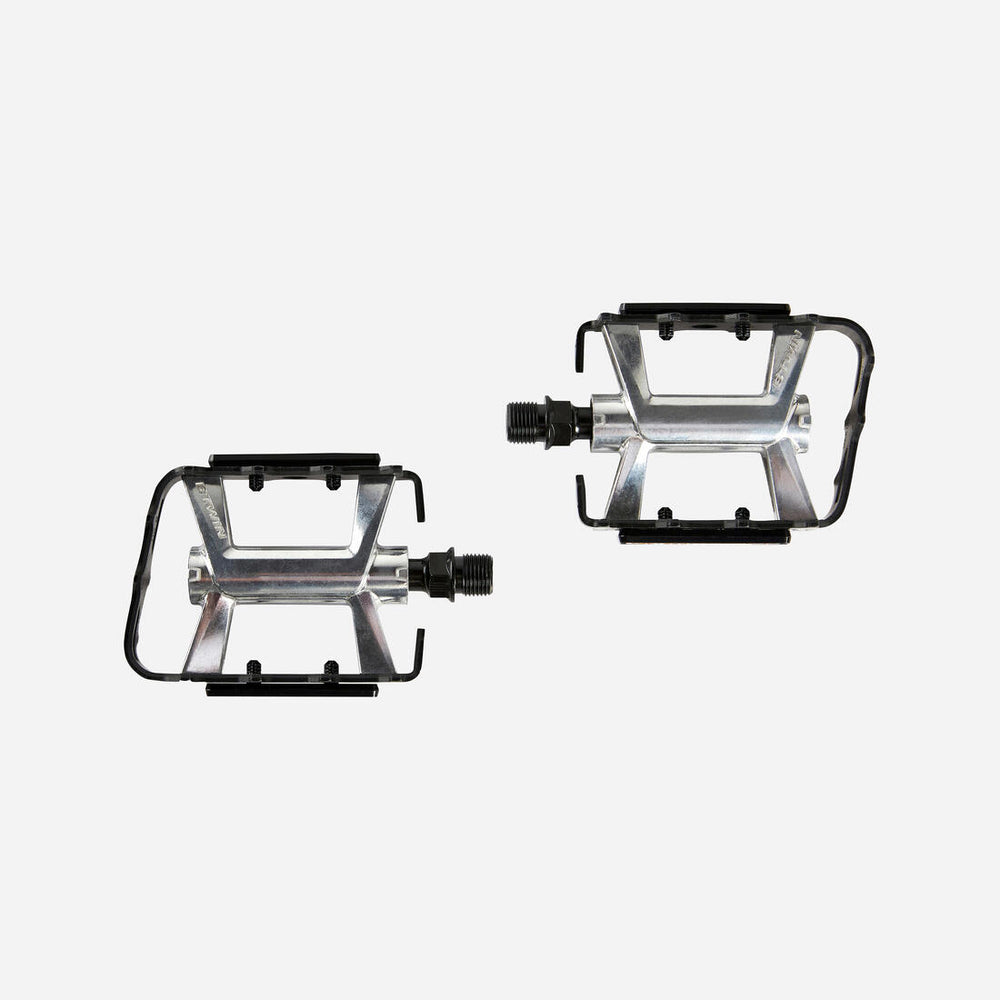 El paso de rosca de los pedales es el del estándar inglés de 9/16", compatible con todas las bicicletas de adulto de BTT, polivalentes, urbanas y de carretera del mercado. Nuestros pedales planos de BTT 500 de aluminio son compatibles con los calapiés universales cód. 8486938