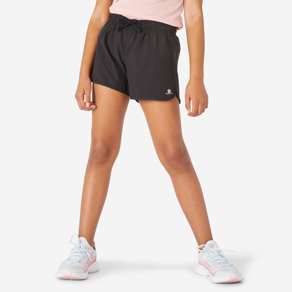 Tejido ligero y transpirable, este short de poliester es ideal para acompañar a las niñas en todas sus actividades. Su cordón en la cintura permite adaptar este pantalón corto a todos los físicos.