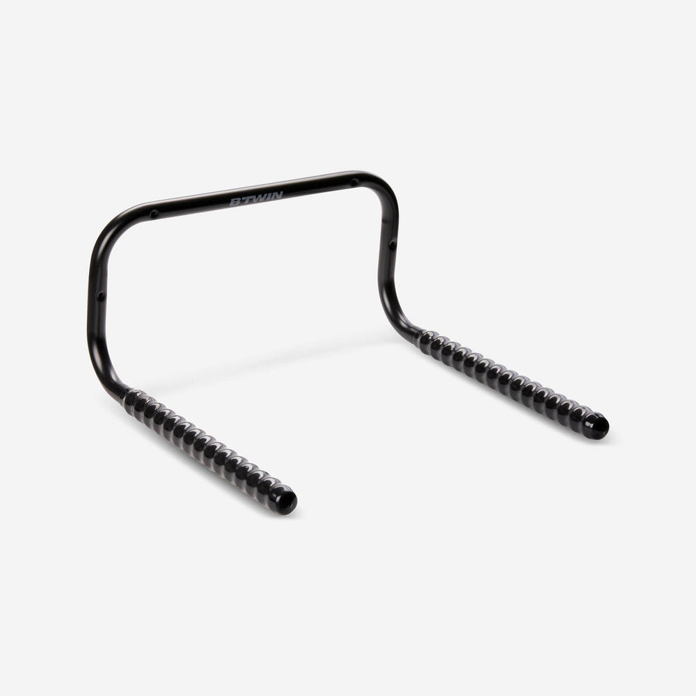 Este soporte de bicicleta tiene 4 agujeros que te permiten fijarlo a la pared. Para dejar el espacio necesario en la parte alta de la bicicleta (para la tija de sillín y el sillín, por ejemplo) y para no tener que levantar la bicicleta más de lo necesario, te aconsejamos que no fijes el soporte demasiado alto. Y no te olvides tampoco de dejar un espacio suficiente a los lados y debajo para que pasen las ruedas.